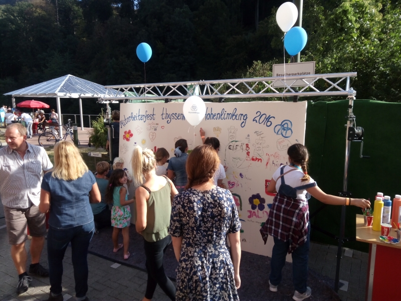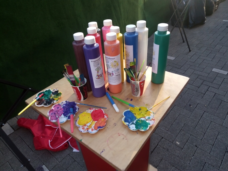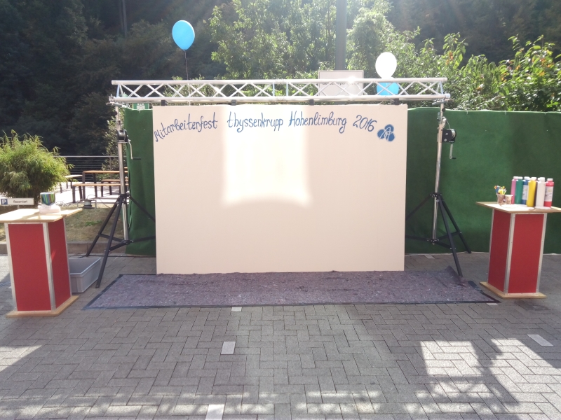 An der Malwand im XXL Format können sich Ihre kleinen und großen Gäste verewigen. Mit Pinsel, Filzmaler, kleine Paletten und jeder Menge Spaß wird aus der schlichten, großen Riesenmalwand im Laufe Ihres Veranstaltungstages ein kleines Kunstwerk. Sie können, zum Beispiel für ein Firmenfest oder Jubiläum, ein Motto vorgeben oder die Gestaltung ganz offen lassen. In jedem Falle werden Sie und Ihre Besucher von dem Ergebnis überrascht sein. Je näher Sie der Malwand XXL kommen, desto mehr kleine und herrlich schöne Details lassen sich erkennen. Wenn Sie die Wand nach Ihrem Event noch einmal ausstellen, haben Sie zugleich eine schöne Erinnerung an Ihre Veranstaltung. Die Riesenmalwand mieten Sie bei uns mit einer freundlichen Betreuung und dem benötigtem Malequipment.