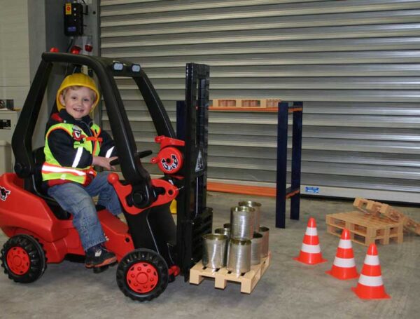 Im fetzigen rot und schwarz kommen unsere detailgetreuen Kinder Gabelstapler zum Mieten auf Ihre Veranstaltung. Ausgestattet mit einer höhenverstellbaren Gabel, einem Tretantrieb und mit viel Zubehör bringen die kleinen Gabelstapler Schwung auf jede Veranstaltung. Denn bei dieser Aktion kommen die Kleinen wirklich groß heraus und dürfen zeigen, dass sie das Zeug zum „Lagerchef“ haben. Unser Eventbetreuer nimmt die kleinen Teilnehmer nach einer kurzen Einweisung mit auf den Parcours und jedes Kind erhält nach Slalomfahren, dem Beladen eines Mini-Lagerregals und anderer kleiner Aufgaben einen tollen „Führerschein“, den wir Ihnen auch optional mit Ihrem Logo bedruckt, anbieten.